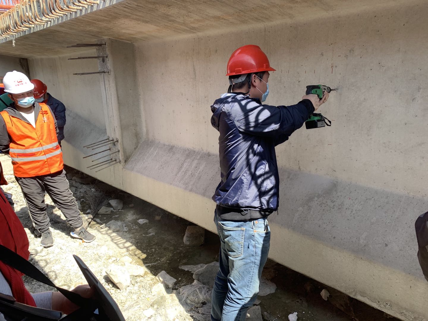 工程實(shí)體質(zhì)量監(jiān)督檢測(cè)工作由檢測(cè)一部實(shí)施,檢測(cè)工作的內(nèi)容為預(yù)應(yīng)力橋梁墩柱、梁板的實(shí)體檢測(cè)。我部門接到檢測(cè)任務(wù)后,安排技術(shù)力量強(qiáng)、業(yè)務(wù)精、檢測(cè)經(jīng)驗(yàn)豐富的專業(yè)技術(shù)人員組建了4人的檢測(cè)小組,提前與參建各方聯(lián)系,收集工程資料,全面了解和掌握工程特點(diǎn)和難點(diǎn),詳細(xì)編制了質(zhì)量監(jiān)督檢測(cè)方案。檢測(cè)小組于4月7日奔赴項(xiàng)目現(xiàn)場(chǎng),輾轉(zhuǎn)金華、麗水、臺(tái)州三地,并于4月11日完成全部實(shí)體檢測(cè)工作。檢測(cè)小組后續(xù)將按照委托要求及時(shí)出具檢測(cè)報(bào)告,按時(shí)提交本次質(zhì)量監(jiān)督檢測(cè)的全部資料。