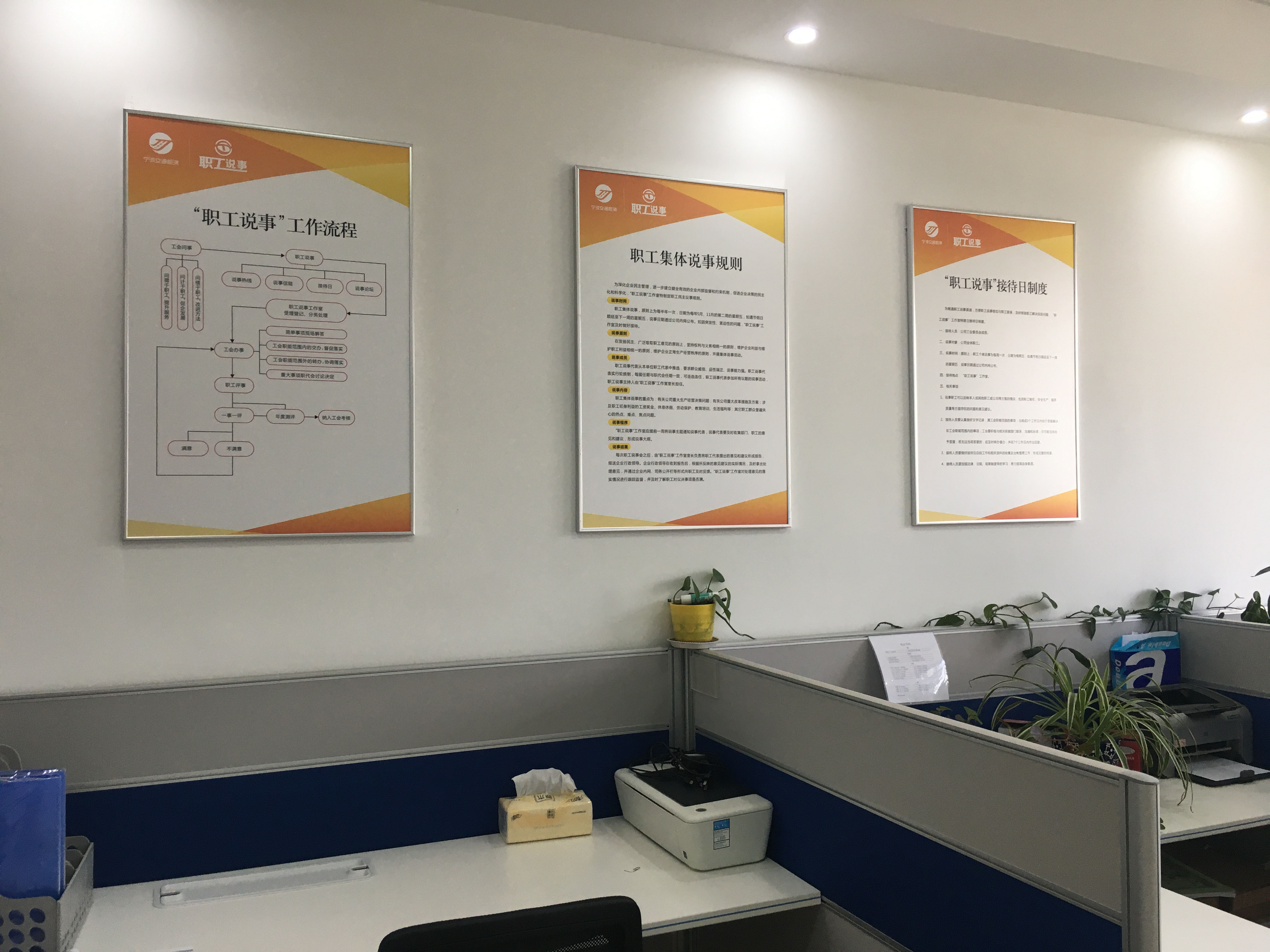 目前公司“職工說事”工作室設(shè)立在四樓工會辦公室,按規(guī)范化要求做到“七有”:有工作場所,有標(biāo)識標(biāo)牌,有工作制度,有說事熱線,有說事信箱,有輪值表,有記錄簿。輪值的工會干部將在每周五下午2點至4點進行集中接待。對于職工提出的訴求,能當(dāng)場答復(fù)處理的立即辦理,不能當(dāng)場解決的協(xié)調(diào)有關(guān)部門按期辦理,違反規(guī)定不能解決的做好解釋工作,確保職工說的事“件件有回音、事事有著落”。