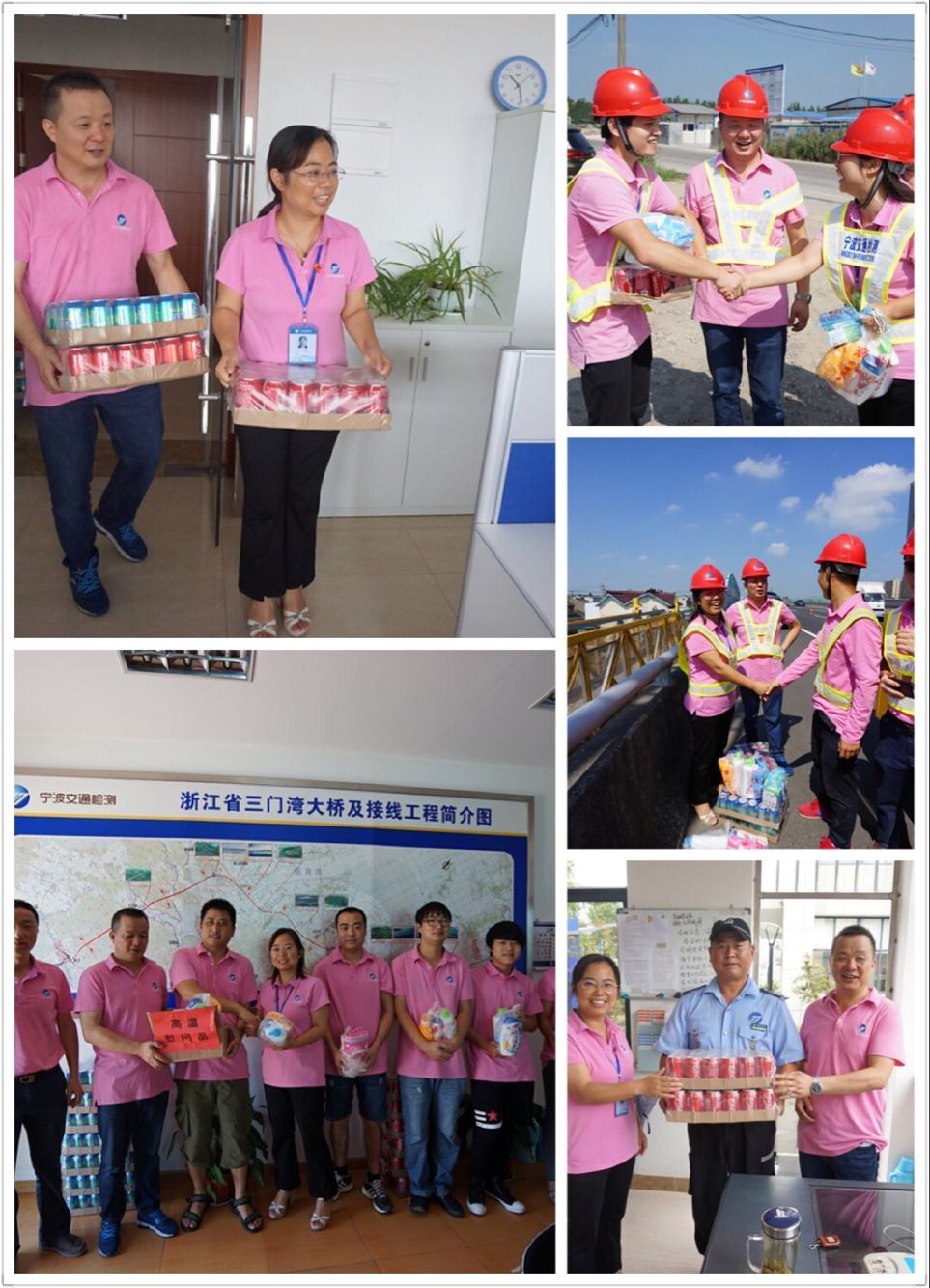 7月中旬以來,高溫來勢兇猛,我省大部分地區(qū)迎來了37度以上的酷熱天氣,近期甬城更是“炎”值報(bào)表,連發(fā)高溫紅色預(yù)警信號,最高氣溫連續(xù)高達(dá)40度以上,滾滾熱浪使一線檢測人員承受著極大的“烤”驗(yàn)。為切實(shí)做好防暑降溫工作,28日起,公司工會全面啟動“高溫送清涼,員工保安康”慰問工作,先后奔赴余慈、三門灣兩個異地試驗(yàn)室、繞城高速公路西線、鄞州區(qū)高陽路(翻石渡至明光路)拓寬改造工程看望慰問奮戰(zhàn)在高溫第一線的員工,為他們送去一份清涼,捎去一片的關(guān)愛。