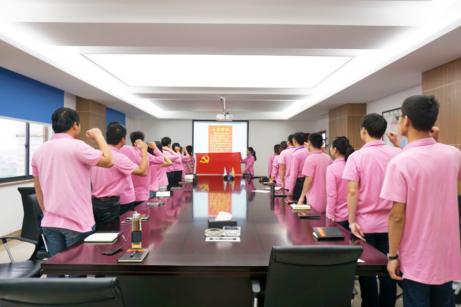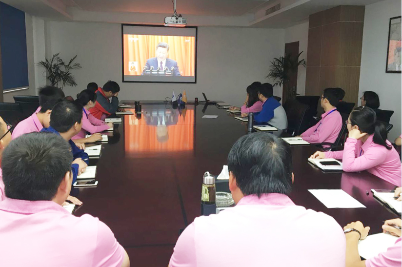 大會(huì)開幕當(dāng)天,公司全體黨員佩戴黨徽,齊聚會(huì)議室,舉起右拳,面向鮮紅的黨旗,一起莊嚴(yán)地重溫入黨誓詞,以昂揚(yáng)的姿態(tài)和飽滿的熱情聆聽十九大報(bào)告,學(xué)習(xí)十九大精神。