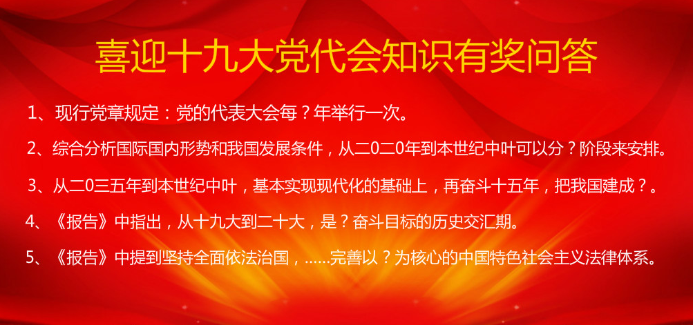 大會(huì)期間,公司黨總支還開展了“喜迎十九大知識(shí)競(jìng)賽”活動(dòng),競(jìng)賽題目以習(xí)總書記十九大報(bào)告為主要內(nèi)容,黨員QQ群每日線上搶答,黨員干部參與熱情高漲,積極踴躍答題,營造了濃濃的大會(huì)氛圍,也加深了大家對(duì)十九大報(bào)告的學(xué)習(xí)效果。